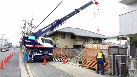 玉掛けさんと息を合わせてアクセル全開 ! 新築隣家と1.5mの幅しかないので