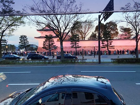 プロジェクションマッピングか何かやってたのか19時前ですが、観光客凄い人数