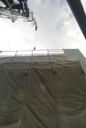 昨日も現場で落下物がクレーンに命中