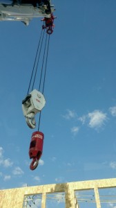 無線で大工さんと喋りながら、トラックの玉掛けさんには図面見ながら次の材料を指示してます