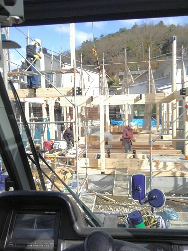 息子は滋賀県のお客様で木造建て方 次回は16日みたいです・・・ コッチは弟担当のパネル建て方 今日は2階床まで 続きは月曜日です 私はSE構法建て方 現場広くてやり易い現場です 少し風が強かったですが天気も良くて建て方日和の一日でしたね\(^o^)/