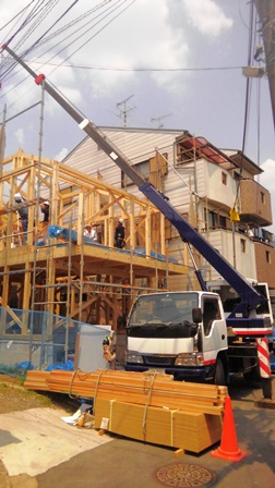 最初の予定では大安の明日 建て方予定でしたけど天気悪くなりそうなんで今日に前倒し