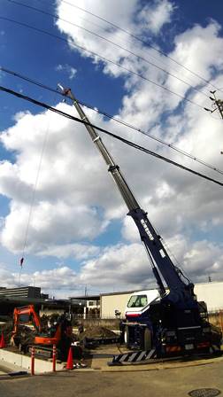 弟は電話線下からの鉄筋搬入