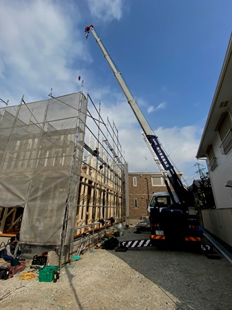 3棟現場の2棟目 クレーン据えてた最後の1棟が少しやり難くなるのかな・・・