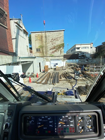 ヨセヨセで現場前に移動 こうしてあげるとガードマンも昼休み出来ますからね~