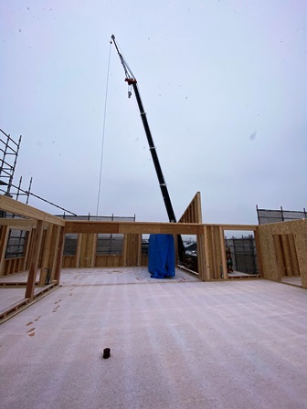 コッチは大規模木造現場 本日は天気悪そうなので荷受けメインで作業してきたみたいです 野地合板以外は全部材料搬入出来たみたいで 段々とゴールに近づいて来てるみたいです 最後まで無事故無災害でよろしくお願いします(^-^) ココは京都市内でも北の方なので今日は結構な雪だったと・・・