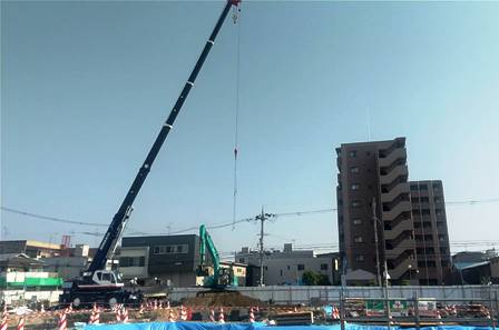 昼には建て方完了 15時に20日に建てる隣の建て方材料の搬入して終了です