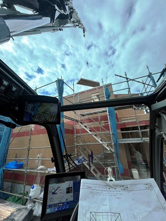 私はツーバイ現場3日目 本日は屋根パネル据付