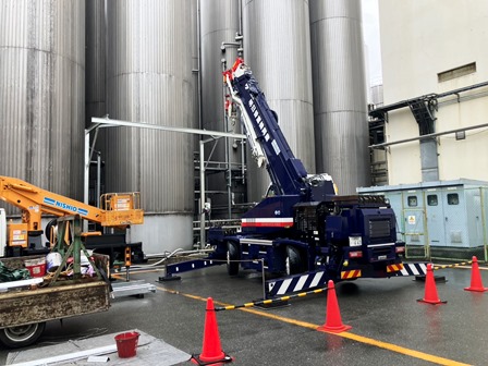 電線に囲まれた現場です・・・ 線内設置 足場飛ばしてラフター入れるか