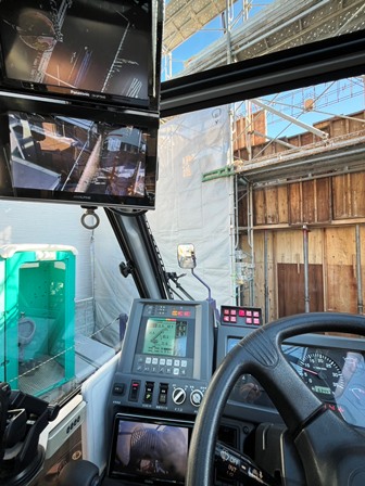 2日目もミニで乗り込み時、大通りから現場に入ると気付いた大工さんが誘導に直ぐ出て来てくれて