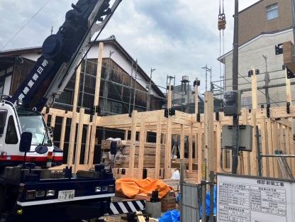 今日はSE構法建て方2件 ミニと3t 在来木造2件 ピタとミニ エレベータ鉄骨1件 コッチは16R