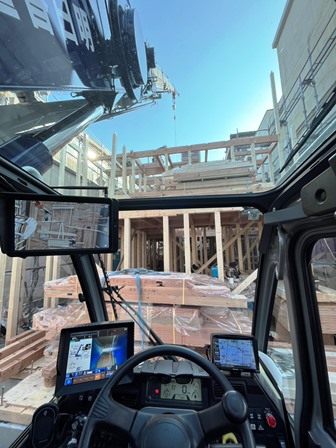 昨日よりフル伸縮の木造現場に入っています 本日2日目 昨日はトラック9台荷受け スペース無くて電話線下 ベースブームまで縮めてからフルブームまで 月曜日に母屋や垂木 野地合板を揚げてから手前の残してある3階と小屋部分を組める所まで組んで 終了予定 手前の小屋は吊り代無くて無理っぽいですが、まぁ出来る所まで 頑張ります (^-^)