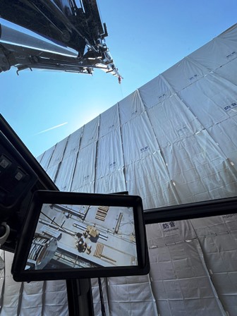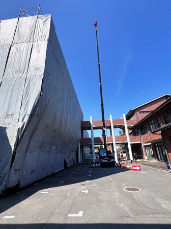 今日のミニ部隊 一台は木造 私は改修現場で防水材搬入とスクラップ材の搬出へ ソコソコ大きな物件ですが、お客様にお聞きすると クレーンが入るのは今回だけらしいです・・・残念