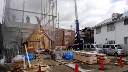 私は木造建て方現場へ
