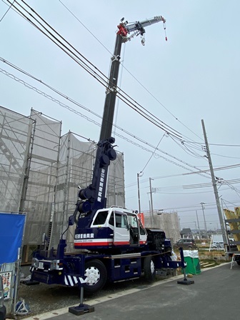 電線外からの作業計画でしたが何とか内側に据えれそうだったので線内からの建て方に