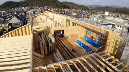 私も在来木造建て方 少し前に2軒隣をフル伸縮で建てた同じ開発地なんですが 今日はやり易くって天国でした(^-^)