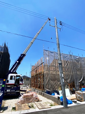 息子はピタで少し前に良く通ったRC現場でエアコン搬入 午前中に終って午後はピタの水平ブームのグリスアップ