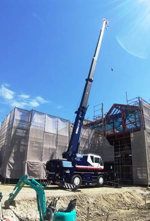 前面足場が有るとクレーン据えれなくなるので細かく配置図に足場の指示して