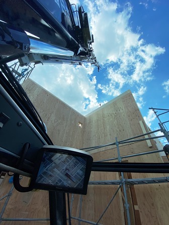 今日は小屋組 12日に屋根パネル載せて終了予定です