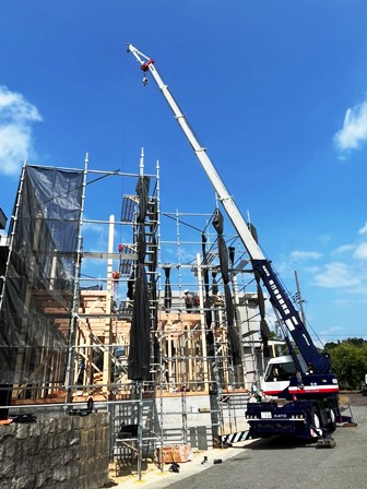 息子はミニで建築現場へ 私は木造建て方へ GLプラス1.5mほど有るんで孫出しでした