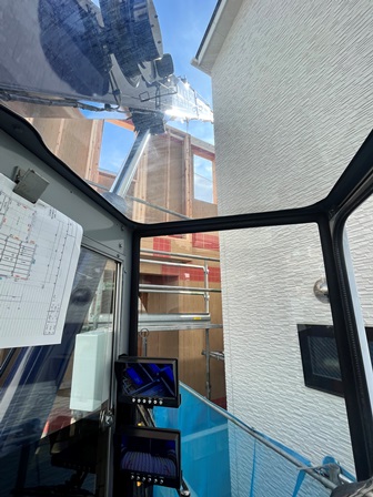 私は3tでツーバイ現場 通算4日目 隣家ギリギリで何とか奥の梁届きました (^-^) 今日は3台荷受けで2台分は建物内に搬入して最後の1台はそのまま丸吊りで取りあえず荷降ろし 結局全部捌けなくて、クレーンも出れなくなったので置いて帰りました 17時 早く終わって戻っていた息子に迎えに来てもらって本日終了です (^-^)